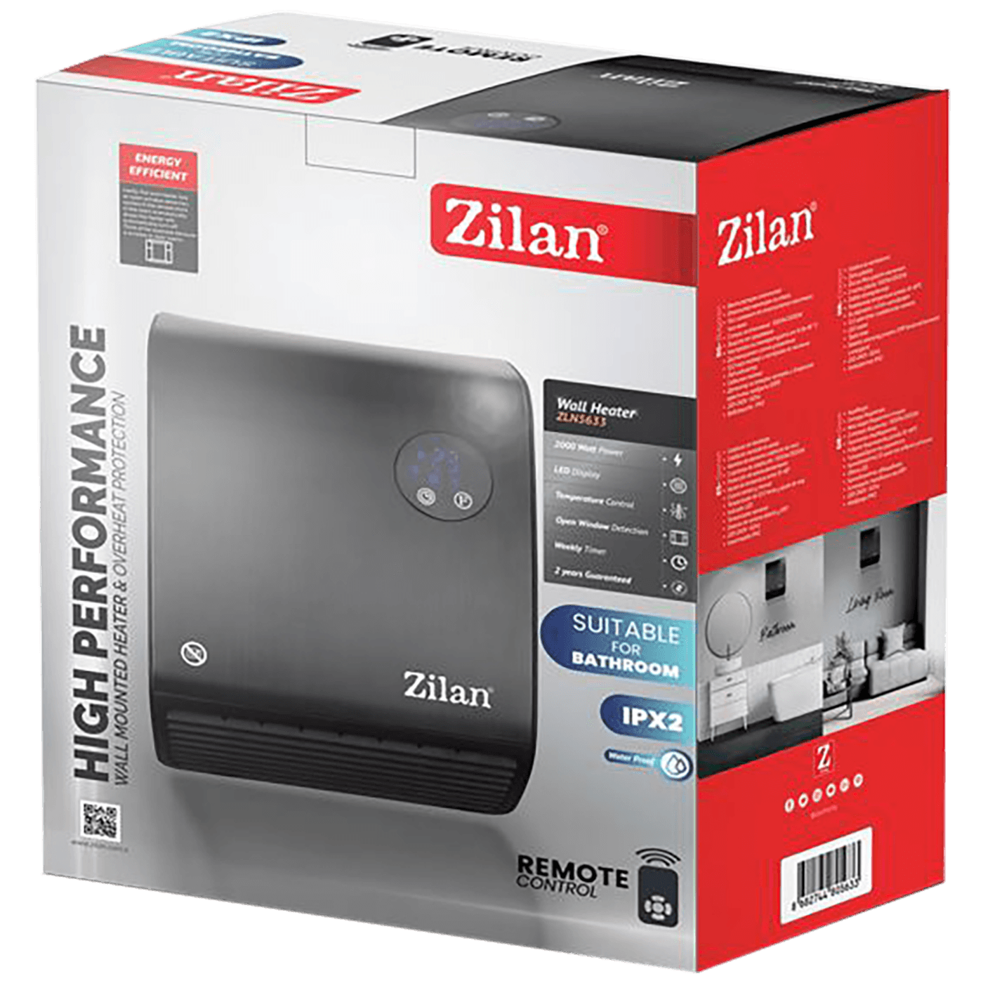 Zidna grijalica sa dajinskim upravljačem, 2 postavke grijanja 1000 / 2000 W, podesiva temperatura 10 do 49 °C, timer do 12 h, tjedni timer, LED zaslon, detekcija otvorenog prozora, zaštita od pregrijavanja