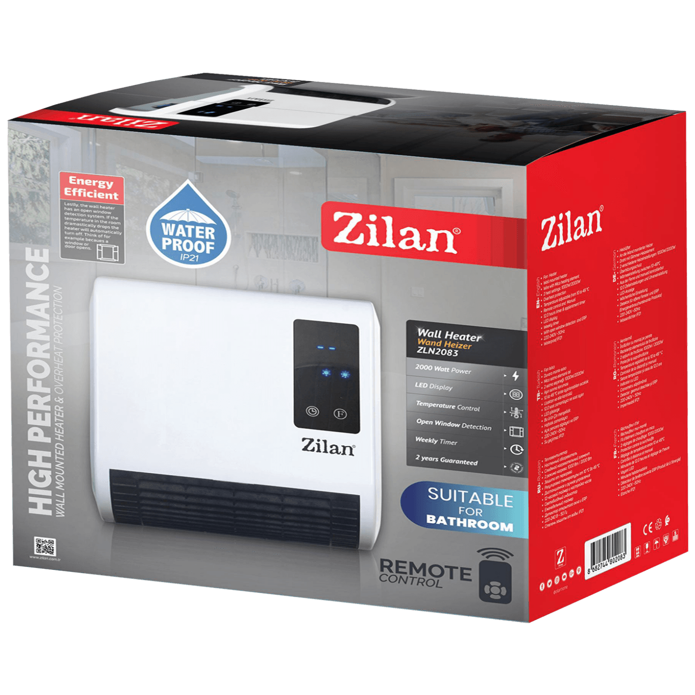 Zidna grijalica sa dajinskim upravljačem, 2 postavke grijanja 1000 / 2000 W, podesiva temperatura 10 do 49 °C, timer do 12 h, tjedni timer, LED zaslon, detekcija otvorenog prozora, zaštita od pregrijavanja